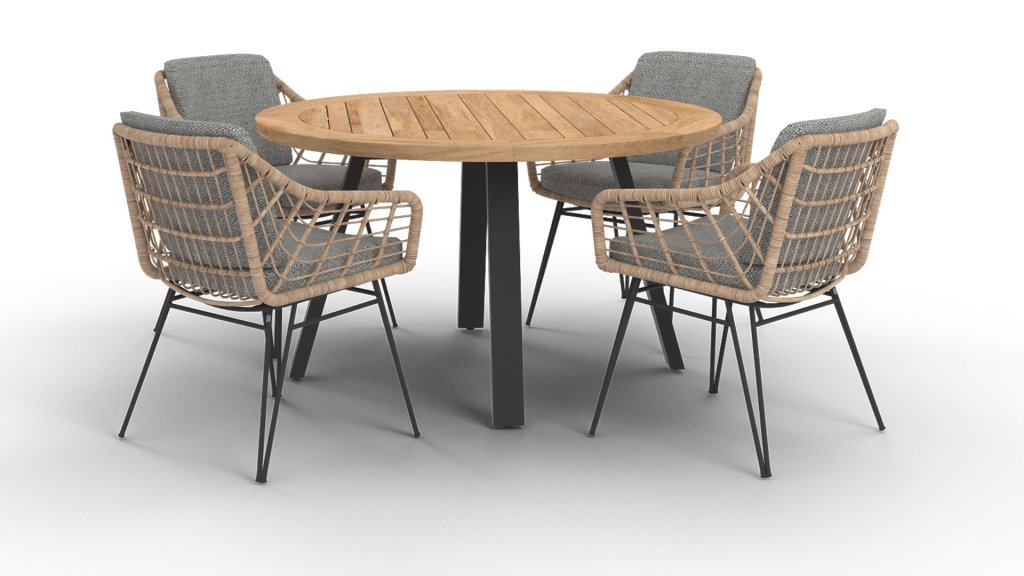 Teak is a natural product and particularly suitable for outdoor use. It is resistant to pests and fungi, and can withstand sun, rain, and snow. Over time, teak develops a silver-grey patina. Teak is a robust material and requires little maintenance. If you prefer the original colour of teak, you can easily prevent it from turning grey by regularly using our care product. Teak can also be cleaned with mild green soap.