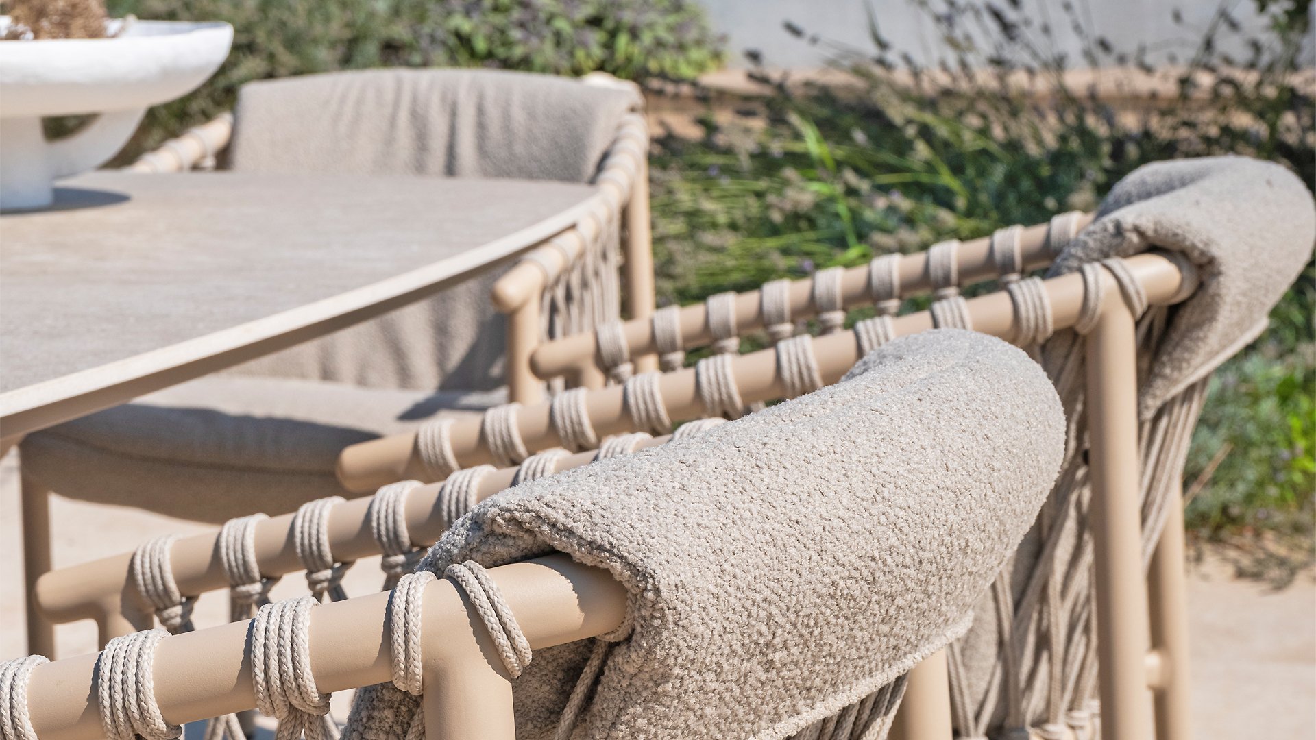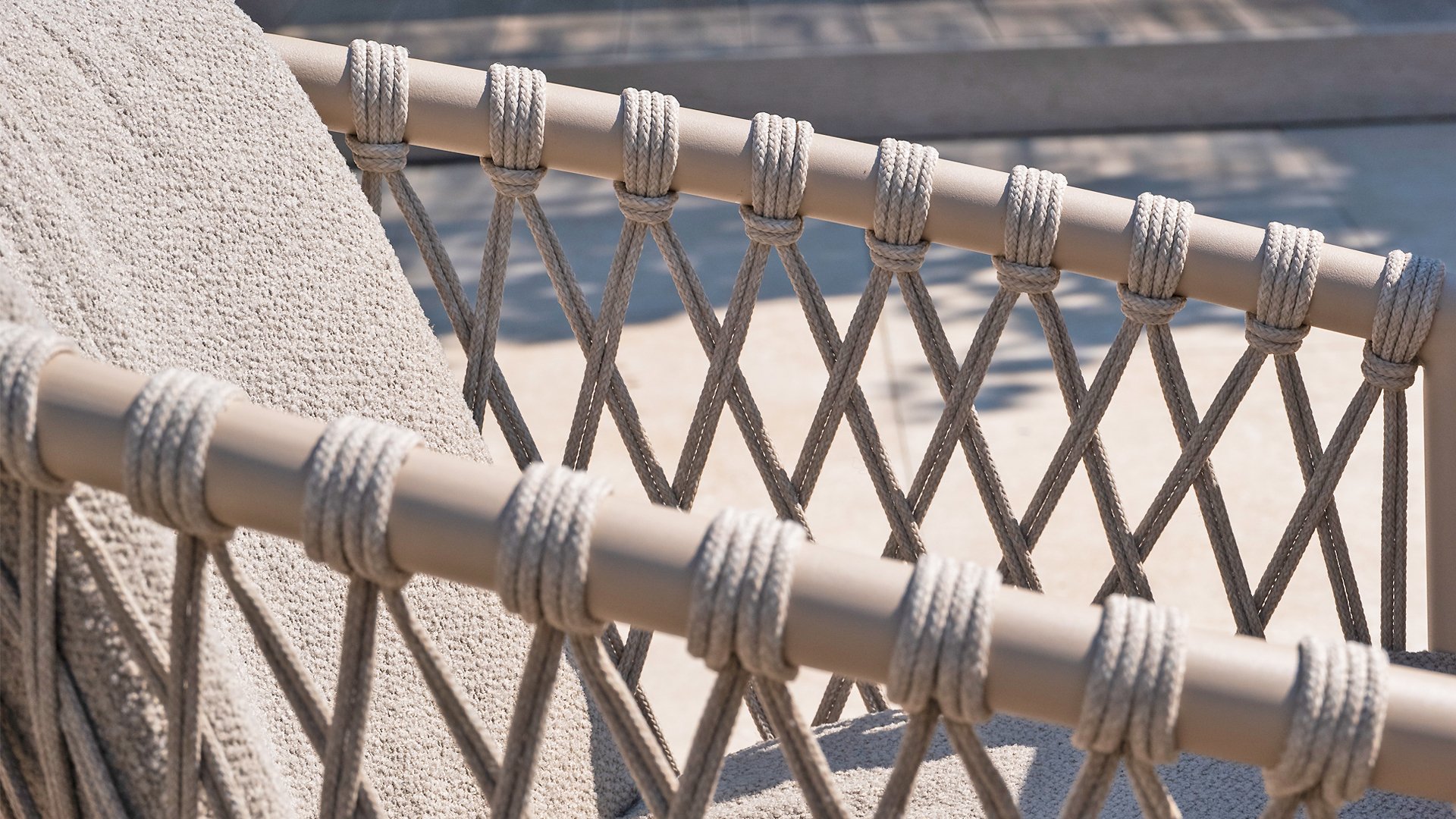 This beautiful material is perfect for outdoor use, because Taste Rope is not just any shoelace. Taste uses very high-quality rope made from 100% SDP (Solution Dyed Polypropylene). This material is extremely strong and has very little stretch. Polypropylene is oil-based, so dirt and contaminants are virtually insoluble, just like our cushions. Taste offers exclusive designs using hand-woven Rope patterns and techniques.