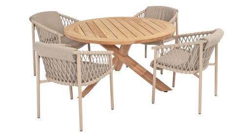 You can certainly call this table the highlight of the collection. The high-quality teak, in combination with the beautiful cross base, makes this Taste by 4Seasons Prado Ø130cm table a gem. It can be combined with almost any dining chair from our collection, so there is something for everyone. It can also be combined with the Prado Lazy Susan. The top is available in both teak and ceramic. The Prado with a teak top is available with the following table legs: Teak, Latte, and Anthracite. Still a ceramic enthusiast? Then check out the Prado ceramic with the Terre & Latte frames.