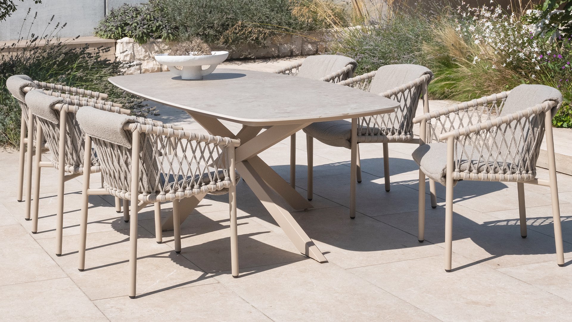 This beautiful material is perfect for outdoor use, because Taste Rope is not just any shoelace. Taste uses very high-quality rope made from 100% SDP (Solution Dyed Polypropylene). This material is extremely strong and has very little stretch. Polypropylene is oil-based, so dirt and contaminants are virtually insoluble, just like our cushions. Taste offers exclusive designs using hand-woven Rope patterns and techniques.