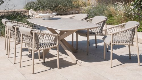 With its generous dimensions, this table offers ample space for a cozy meal with friends or an intimate dinner with family. The combination of refined ceramics and the strong, stylish base ensures that this table is not only functional but also makes a stunning statement in your garden.