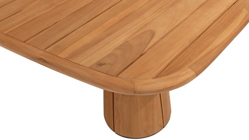 Teak is a natural product and particularly suitable for outdoor use. It is resistant to pests and mold and can withstand sun, rain, and snow. Over time, teak develops a silver-gray patina. Teak is a robust material and requires little maintenance. If you prefer the original color of your teak, you can easily prevent it from turning gray by regularly using our care product. You can also clean teak with green soap. We offer a warranty on all manufacturing and construction defects. This does not cover the working of teak. If you choose teak, we expect you to appreciate these qualities. Hairline cracks that may develop, knots in the teak, and rough surfaces or irregular discoloration over time are not covered by our warranty. These characteristics, which give teak its unique character and appearance, are part of its natural properties. Be careful with a flowerpot or vase on your teak garden table, as this can cause persistent rings or color variations. Imperfections are common; these imperfections are characteristic of this product. These irregularities can never give rise to a claim, warranty, or complaint. This is a mark of originality!