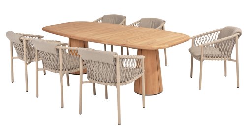 The Capri is a beautiful addition to any interior, fully made from high-quality teak wood. The tabletop has a false oval shape, which gives it a playful yet elegant appearance. This unique shape offers more space for dining and conversations while adding a modern and organic feel to the space. The round legs provide stability and contribute to the clean design of the table. The natural shades and the beautiful grain of the teak wood ensure that each table is unique, with a warm, inviting appearance. This table is perfect for social gatherings and daily meals. A real eye-catcher that combines functionality and aesthetics. Also available in the following sizes: