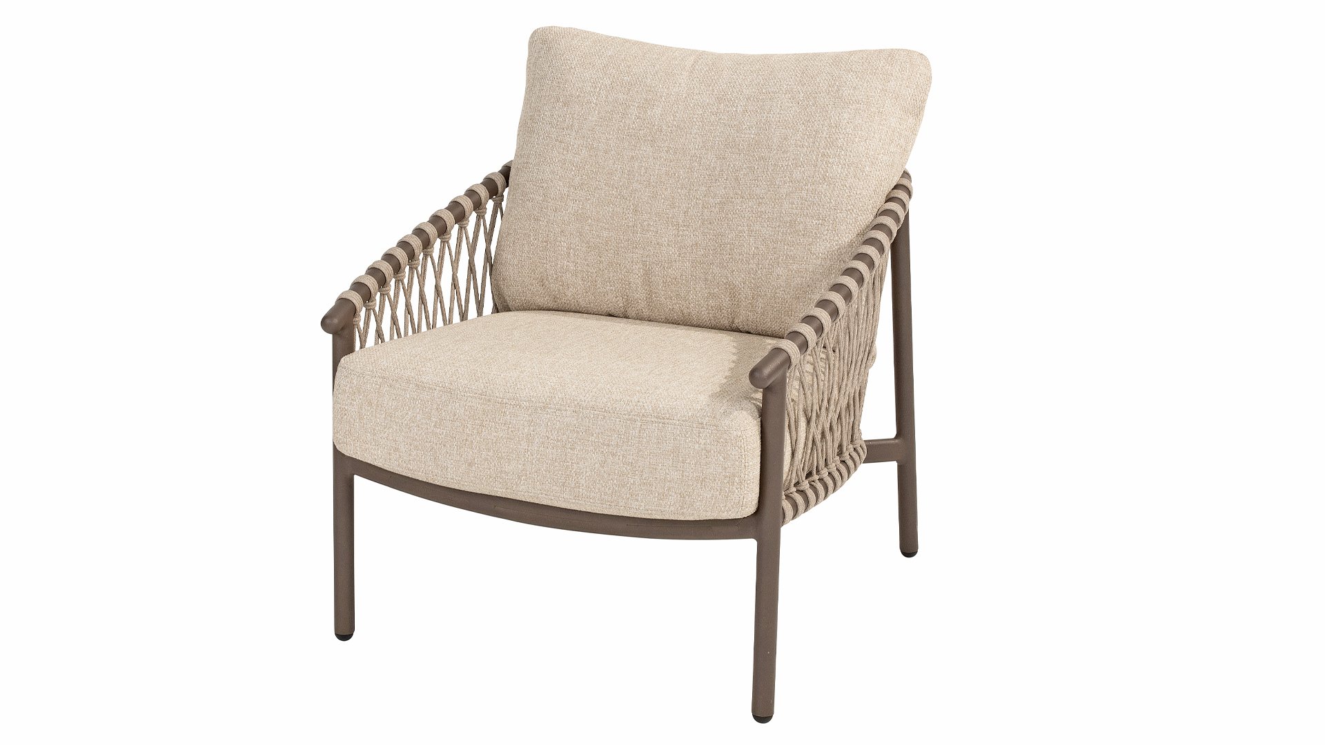 Discover the ultimate balance between style and comfort with our Terra metallic lounge chair with grey rope, perfect for your garden. The 4SO Allora has a sleek, metal frame in a luxurious bronze tone. This adds a modern, refined touch to your outdoor space. The soft grey rope not only provides an elegant contrast but also ensures exceptional comfort and durability. The 4Seasons Allora lounge sets are weather-resistant, low maintenance, and designed to be your favorite place to relax all summer long. Transform your garden into an oasis of tranquility and style – the perfect lounge chair for outdoors!