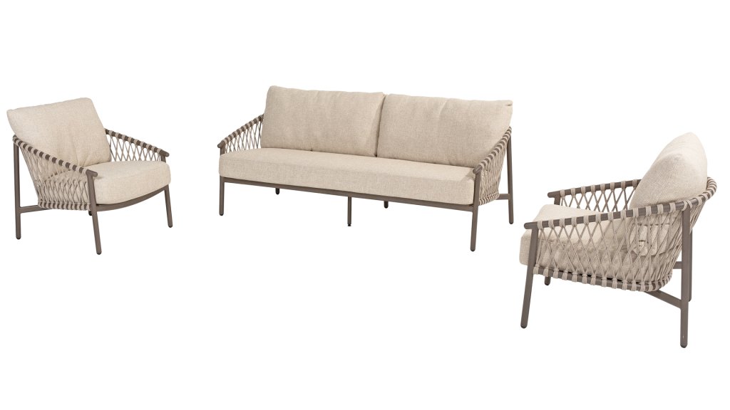 Discover the ultimate balance between style and comfort with our Allora Terra metallic lounge set with gray rope, perfect for your garden. The 4SO Allora features a sleek, metallic frame in a luxurious bronze tone. This adds a modern, refined touch to your outdoor space. The soft gray rope not only provides an elegant contrast but also offers exceptional comfort and durability. The 4Seasons Allora lounge sets are weatherproof, easy to maintain, and designed to be your favorite spot to relax all summer long. Transform your garden into an oasis of tranquility and style – the perfect lounge for outdoors!