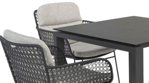 Discover the elegance and durability of the 4 Seasons Outdoor Aprilla Anthracite dining chair in stylish anthracite. This chair comes with cushions and has a beautiful pattern of anthracite wickerwork and an anthracite stainless steel frame.