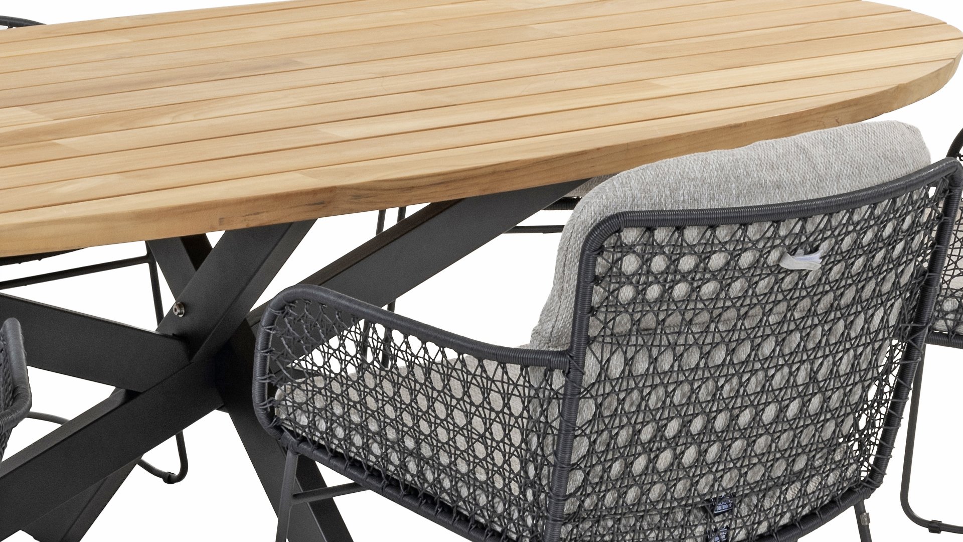 This beautiful material is perfect for outdoor use, because 4SO Rope is not just an shoelace. Our round wires have a synthetic core. This polypropylene base ensures minimal stretching of the rope and also does not absorb moisture. The covering is made of an acrylic fabric, similar to the weather-resistant fabric of our garden cushions. This covering feels soft but is highly water-repellent, UV-resistant, and colorfast. The flat rope variants have the same mix of weather-resistant materials, but the polypropylene material is interwoven with the acrylic fabric. This technique gives the flat rope the same properties but a completely different look. The stretch is minimal, and 4 Seasons Outdoor garden furniture with Rope is suitable for people weighing up to 110 kg. It's therefore an exceptionally strong material, but it's important to be careful with sharp objects. Our Rope is weather-resistant, but a sharp object can seriously damage your garden furniture. We offer exclusive designs using hand-woven Rope patterns and techniques.