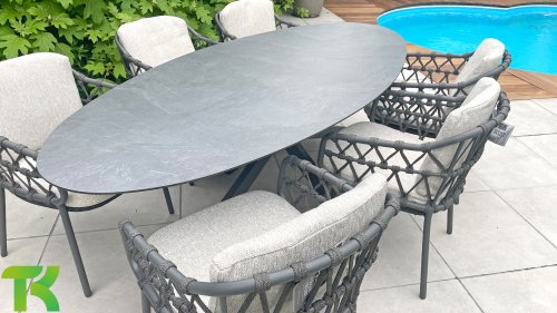 This material has been used for decades as flooring, finishing in bathrooms, and luxury (outdoor) swimming pools. It's no wonder this durable material is known for its extreme hardness. The beautiful appearance of the material makes ceramic highly distinctive and sought-after. Ceramic is a mixture of natural materials comparable to a type of clay. It is fired at very high temperatures, creating a light yet very strong material that is extremely scratch-resistant and can also withstand extreme temperatures. As mentioned, ceramic has several unique properties that offer many advantages, especially for outdoor use. Ceramic is extremely hard, resistant to shocks, impacts, and scratches. Heat and cold are no problem for ceramic, so garden tables can remain outdoors year-round. Ceramic is colorfast, so even after years of outdoor use, your 4 Seasons Outdoor garden table will still look beautiful. Ceramic is a hygienic material due to its high density. Food stains are easily cleaned with a cloth. Household cleaning products also leave no residue.