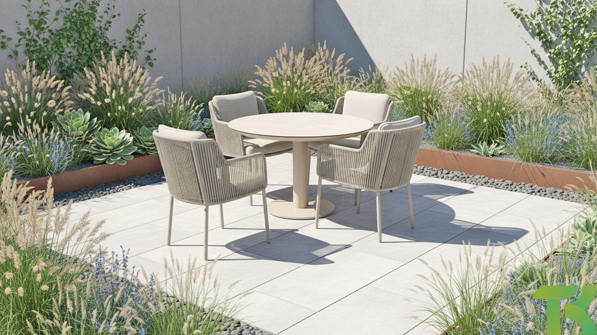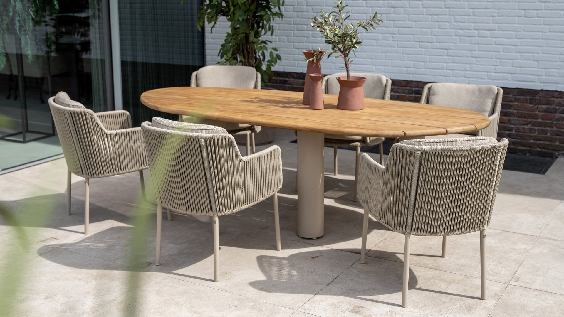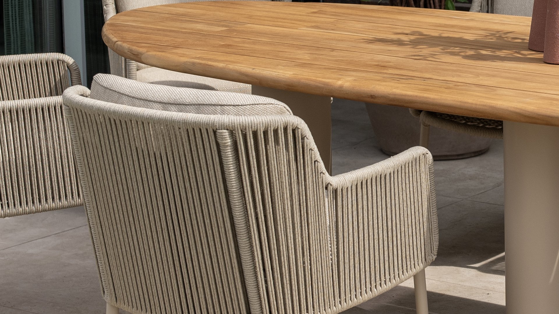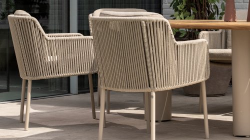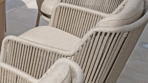 The trendy Latte color gives this rope garden set a soft, modern look. The warm beige complements both natural gardens and sleek, designer patios. Thanks to high-quality materials like aluminum and weatherproof rope, the color will remain beautiful for years. Ideal for those looking for durable and low-maintenance garden furniture.