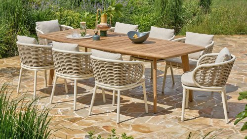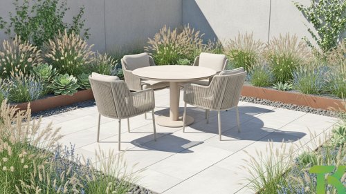 4 Seasons Outdoor Bernini Garden Set Latte – Italian elegance & supreme comfort for your patio of garden.