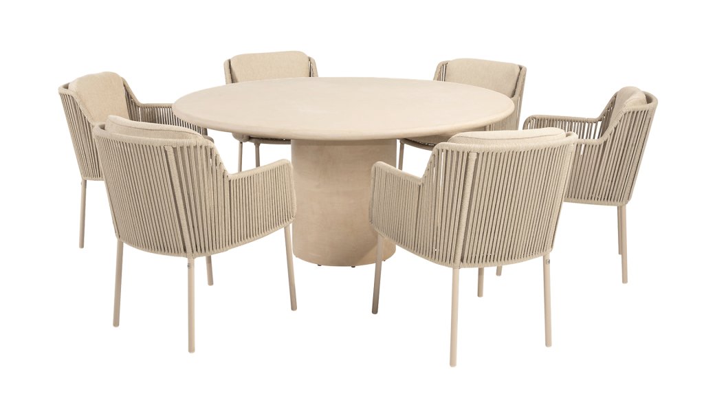 Meet Hampton: the perfect balance between refined elegance and robust simplicity. This beautiful garden table in a stylish beige/white hue exudes tranquility and luxury, and forms the heart of any outdoor space – from intimate dinners to long summer evenings with friends and family.