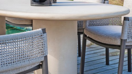 A ceramic top is made of two or three thin layers of ceramic material. Ceramic material is hard-fired and therefore has excellent properties. For normal soiling, simply wipe the top with a damp cloth. Stains can be removed with lukewarm water and green soap, and limescale can be treated with natural vinegar. However, never use harsh abrasives, such as sandpaper, or aggressive agents such as acids and chemicals. Spills of this kind must be removed immediately to prevent irreparable damage. Note: We strongly advise against cleaning your aluminum or ceramic garden furniture with a pressure washer or harsh cleaning agents and/or bleach. These can remove the coating or cause irreparable damage. There is also a risk of discoloration. We advise against covering your furniture for extended periods or covering it with decorations or other items, as this can cause permanent stains or discoloration. Always be careful with fire, oil and grease or hot objects near your furniture as this may cause permanent damage.