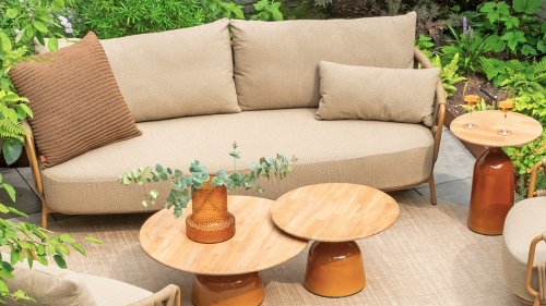 The 4 Seasons Outdoor Biarritz Amber is an elegant and modern lounge collection that exudes warmth and comfort. With its generously woven rope details in a deep amber color and the richly filled cushions in a soft, amber bouclé fabric, this set invites ultimate relaxation in your garden or on your patio.
