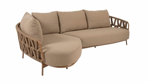The 4 Seasons Outdoor Biarritz Amber is an elegant and modern lounge collection that exudes warmth and comfort. With its generously woven rope details in a deep amber color and the richly filled cushions in a soft, amber bouclé fabric, this set invites ultimate relaxation in your garden or on your patio.