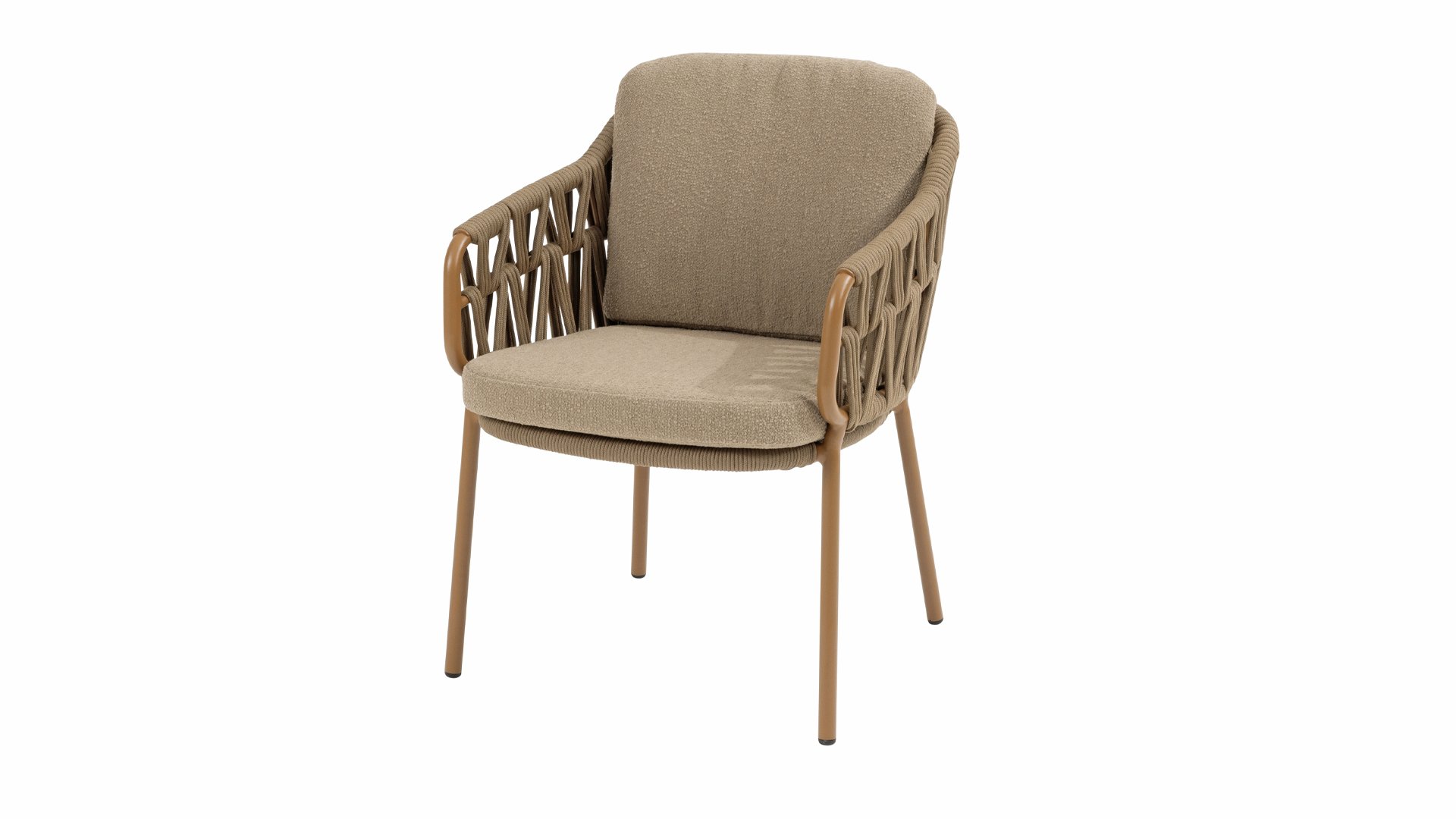 The 4 Seasons Outdoor Biarritz Amber is an elegant and modern lounge collection that exudes warmth and comfort. With its generously woven rope details in a deep amber color and the richly filled cushions in a soft, amber bouclé fabric, this set invites ultimate relaxation in your garden or on your patio.