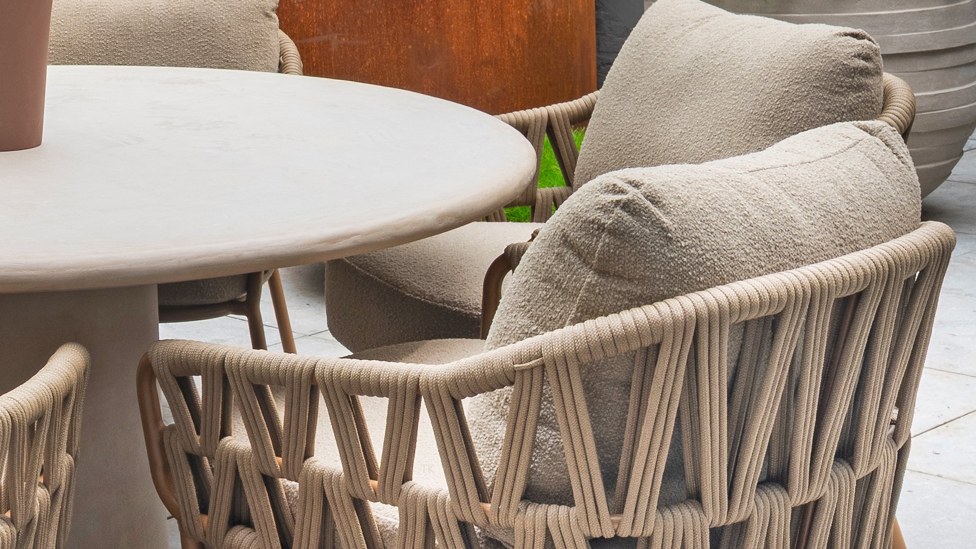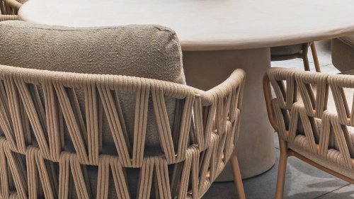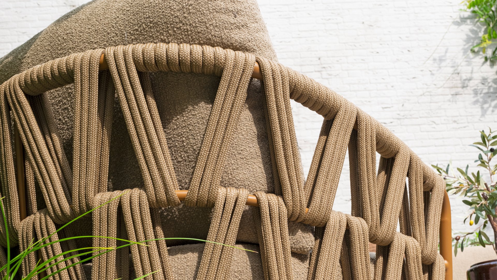 This beautiful material is perfect for outdoor use, because Taste Rope isn't just any shoelace. Taste uses very high-quality rope made from 100% SDP (Solution Dyed Polypropylene). This material is extremely strong and has very little stretch. Polypropylene is oil-based, making it virtually impermeable to dirt and contaminants, just like our cushions. Taste offers exclusive designs using hand-woven rope patterns and techniques.