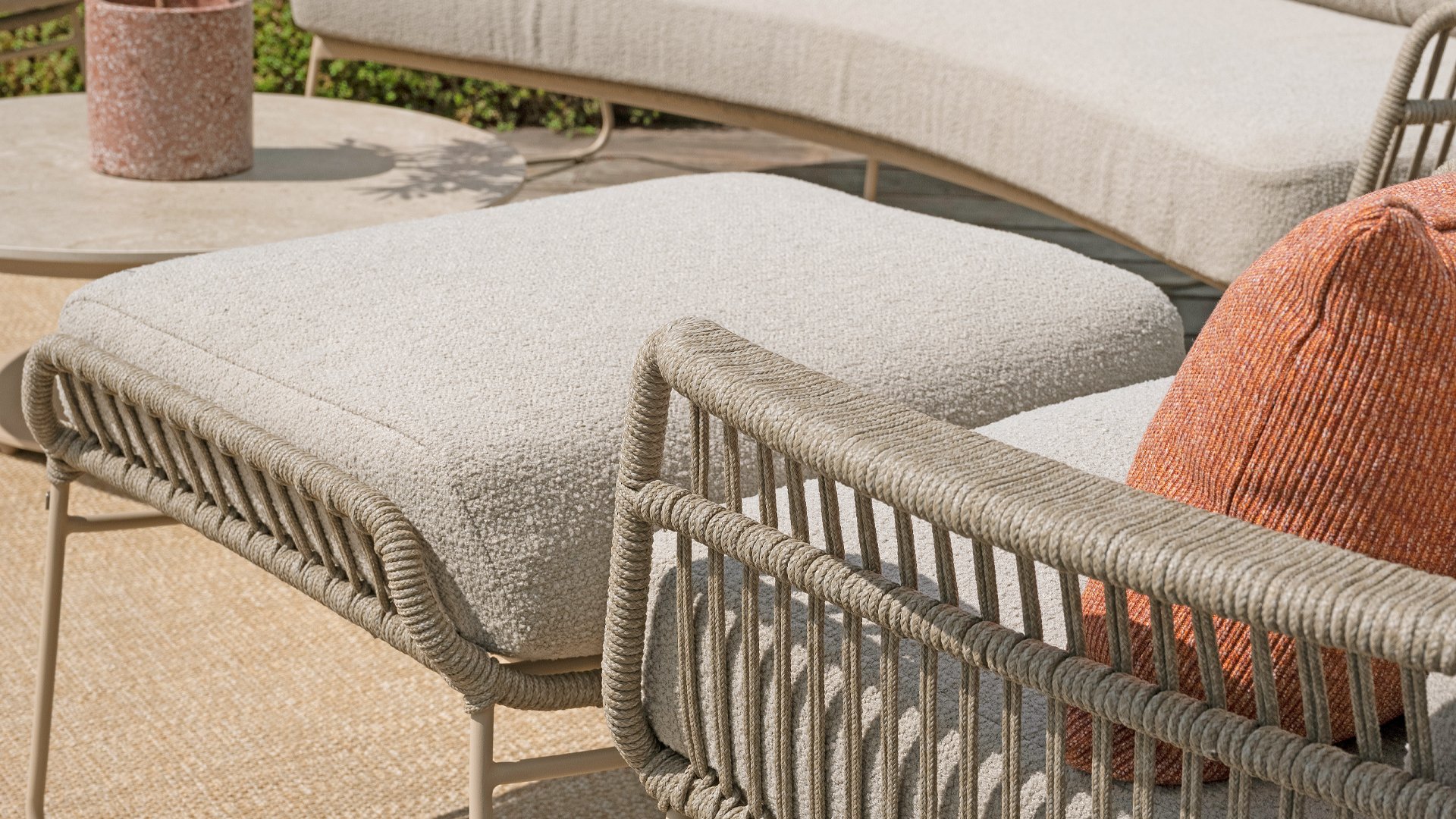 These Botanic lounge sets are made from high-quality outdoor materials that can withstand all weather conditions. The durable rope weaving and the soft yet sturdy cushion covers made of Bouclé ensure that the set not only looks fantastic but is also resistant to an unexpected summer rain shower. In addition, this low-maintenance lounge set is easy to clean, giving you more time to relax and enjoy the outdoor life.