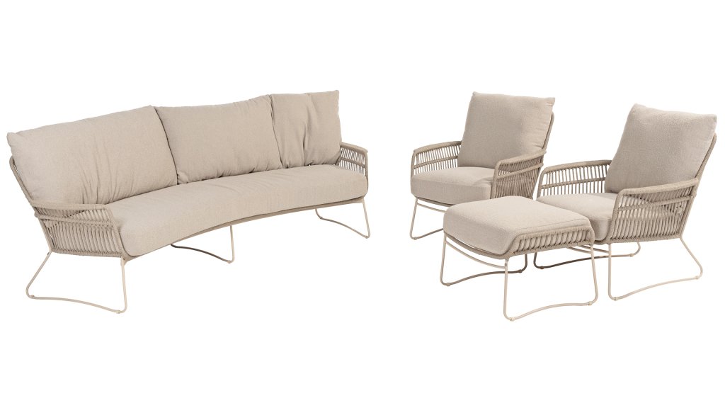 The 4 Seasons Outdoor Botanic lounge set in latte color offers a perfect interplay of stylish design and ergonomic comfort. With its generously padded seat and back cushions, this trendy lounge set provides ultimate lounging comfort, ideal for relaxation in your garden or on your terrace. Note the delightful armrests, which are strikingly "flat" for a wonderfully restful and relaxed position for your arms!