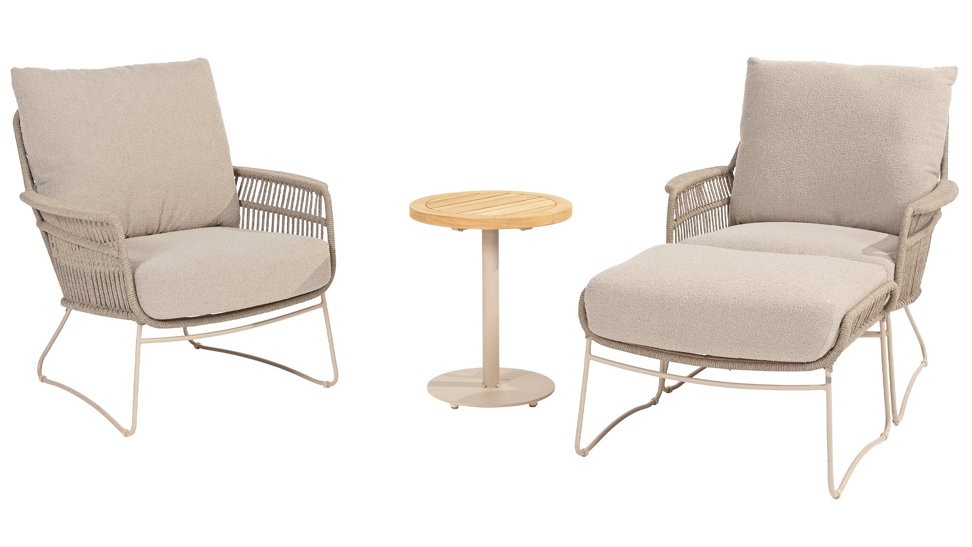 The 4 Seasons Outdoor Botanic lounge set in the color latte offers a perfect interplay of stylish design and ergonomic comfort. With its generously filled seat and back cushions, this trendy lounge set provides ultimate lounge comfort, ideal for relaxation in your garden or on your terrace. Note the delightful armrests which are strikingly "flat" designed for a wonderfully soothing and relaxed position for your arms!