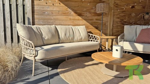 The 4 Seasons Outdoor Calpi series in a new look, Latte. Only available at Gardenfurniturediscount.com.com! It features a contemporary design and gives every terrace the premium and warm looks you are looking for. The wide rope parts are woven in an original way, giving the Calpi an open character. The 4Seasons Calpi comes with cushions in an all-weather fabric. This fabric has water and dirt-repellent properties, making it resistant to various weather influences. The frame is made of powder-coated stainless steel, which makes the 4SO Calpi Lounge set very suitable for leaving outside all year round.