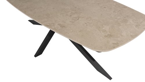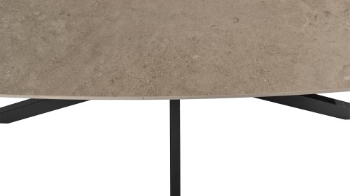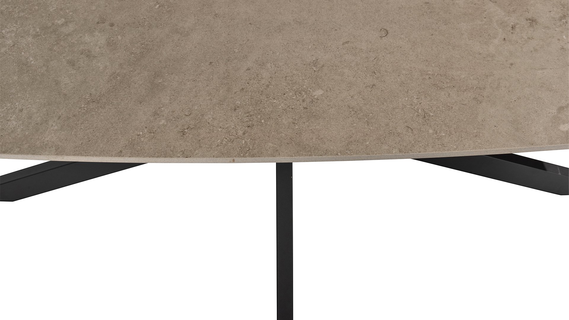 A ceramic tabletop is made from two or three thin layers of ceramic material. Ceramic is kiln-fired, giving it excellent properties. For normal cleaning, simply wipe the surface with a damp cloth. Stains can be removed with lukewarm water and mild soap, and lime deposits with natural vinegar. Never use abrasive materials such as sandpaper, nor aggressive agents like acids or chemical products. Spills should be cleaned immediately to prevent permanent damage.