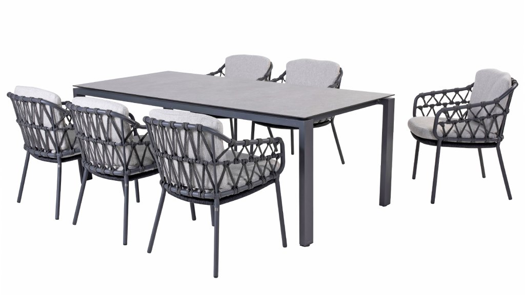 The Calpi dining from 4 Seasons Outdoor has a contemporary design and gives every terrace the premium looks you are looking for. The wide rope parts are woven in an original way and give the Calpi an open character. The Calpi comes with a seat and back cushion in an all-weather fabric. This fabric has a water and dirt repellent effect, making it resistant to many weather conditions. The Calpi series is a complete family within the beautiful collection of 4 Seasons Outdoor. This way you can combine in a lounge set and/or a low dining set in exactly the same style.