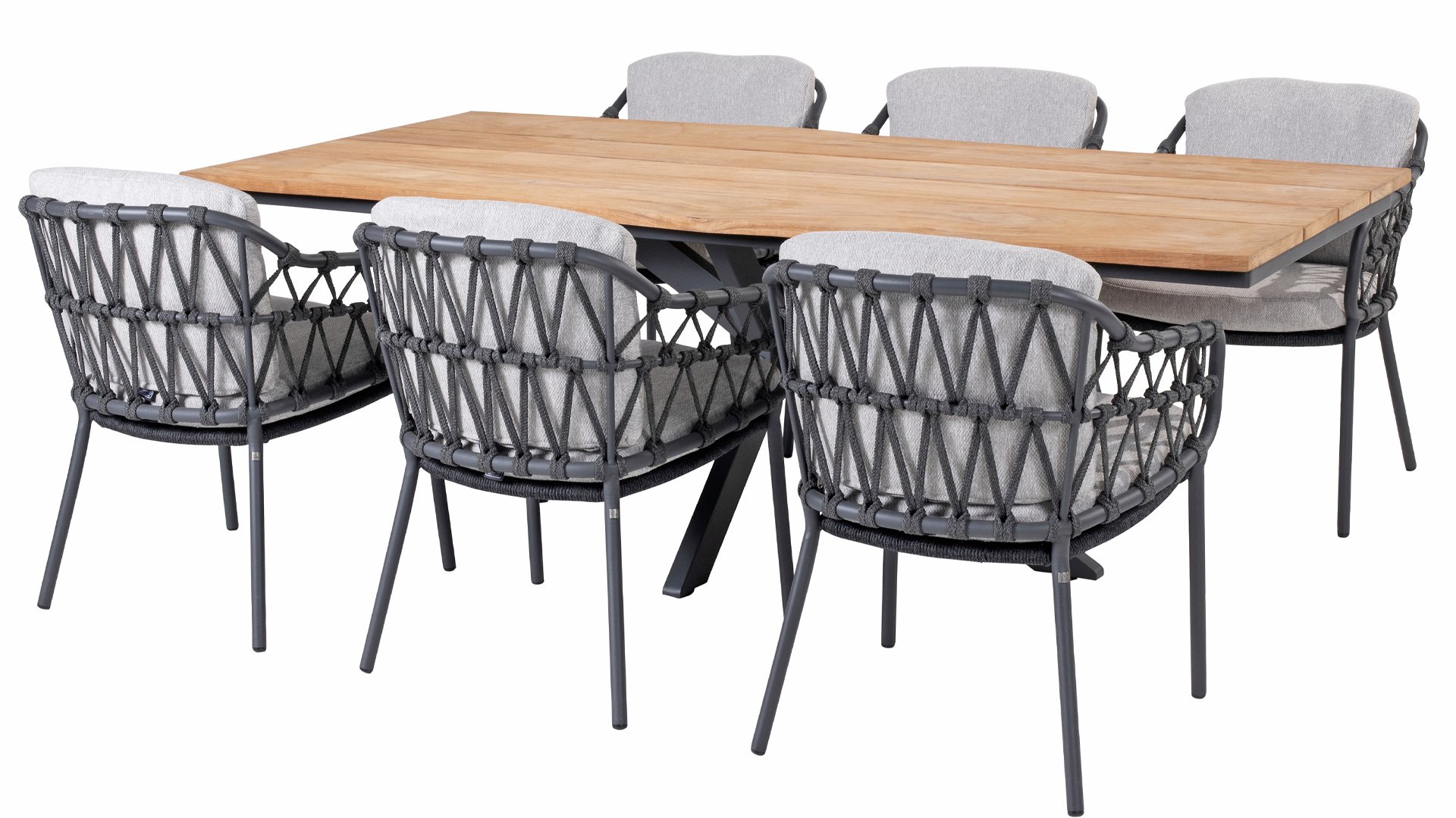 The Calpi dining by 4 Seasons Outdoor has a contemporary design and gives every patio the premium looks you're looking for. The wide rope parts are woven in an original way and give the Calpi an open character. The Calpi comes with seat and back cushions in an all weather fabric. This fabric has a water and dirt repellent effect, making it resistant to many weather influences. The Calpi series is a complete family within the beautiful collection of 4 Seasons Outdoor. This way you can combine a lounge set and/or a low dining set in exactly the same style.