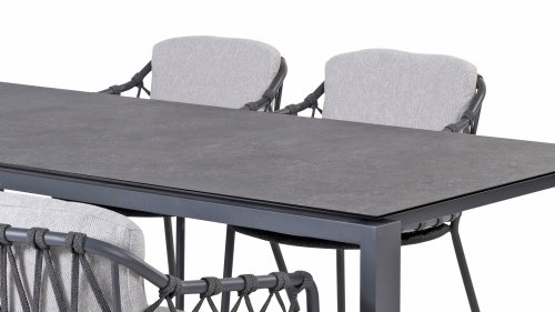 The Calpi dining from 4 Seasons Outdoor has a contemporary design and gives every terrace the premium looks you are looking for. The wide rope parts are woven in an original way and give the Calpi an open character. The Calpi comes with a seat and back cushion in an all-weather fabric. This fabric is water and dirt repellent, making it resistant to many weather conditions. The Calpi series is a complete family within the beautiful collection of 4 Seasons Outdoor. This allows you to combine in a lounge set and/or a low dining set in the same style.