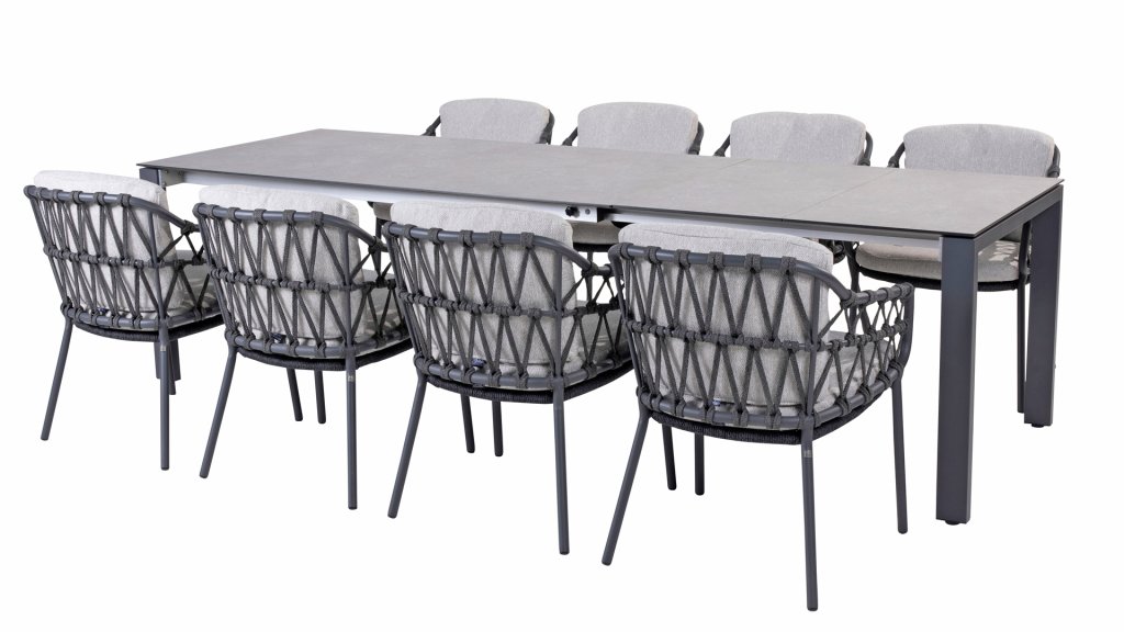 The Goa series by 4Seasons Outdoor is characterized by simplicity and elegance. The table is very practical due to the 4 legs at the ends of the table. This allows an extra person to sit at the head of the table. The table is elegant because of its floating top. Available in lengths 95, 160, 220, 280 cm.