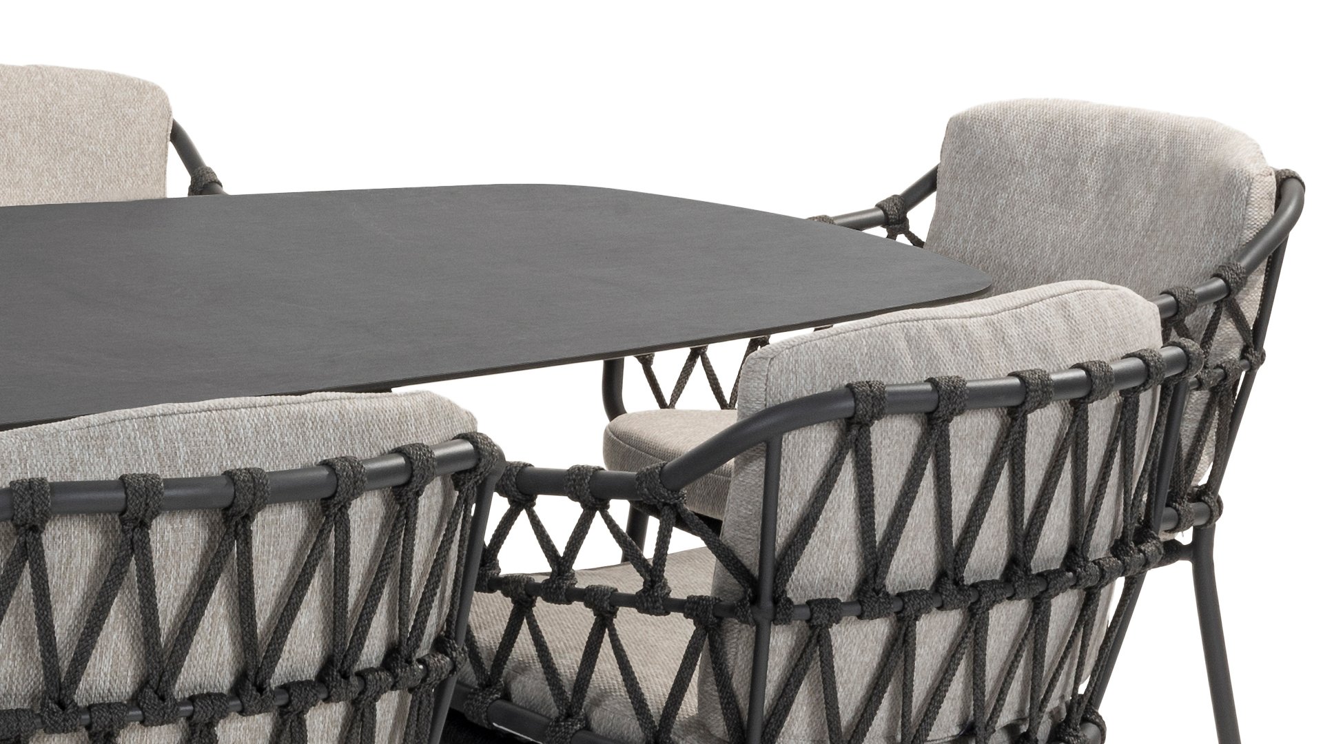 This beautiful material is perfect for outdoor use, because 4SO Rope is not just any ordinary shoelace. 4Seasons uses very high-quality rope made from 100% SDP (Solution Dyed Polypropylene). This material is extremely strong and has very little stretch. Polypropylene is oil-based, making it resistant to dirt and contamination—just like our cushions. 4Seasons offers exclusive designs that feature handwoven rope patterns and techniques.