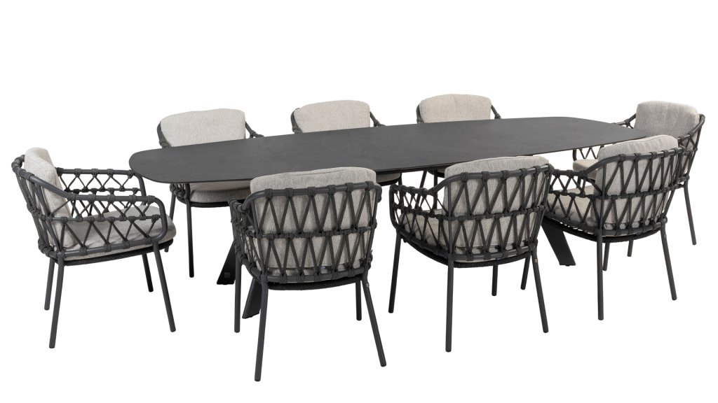 The 4Seasons Outdoor Montana is a beautiful table that immediately catches the eye. It not only looks modern, but is also incredibly practical due to the shape of the tabletop. The table stands out due to the Danish oval table top, which creates enough space on all sides of the table. In the Montana series, there are different options; you can combine the 240 cm terrazzo ceramic top with a stainless steel or teak base. Within the Montana series, there is also a 280 cm table with an HPL top.