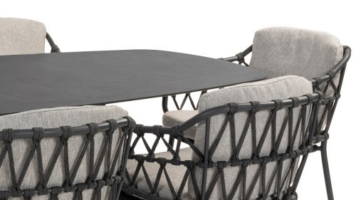 The Calpi dining by 4 Seasons Outdoor has a contemporary design and gives every terrace the premium looks you are looking for. The wide rope sections are woven in an original way and give the Calpi an open character. The Calpi comes with a seat and back cushion in an all-weather fabric. This fabric has a water and dirt repellent effect, making it resistant to many weather conditions. The Calpi series is a complete family within the beautiful collection of 4 Seasons Outdoor. By combining in a lounge set and/or a low dining set in the same style.