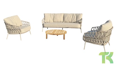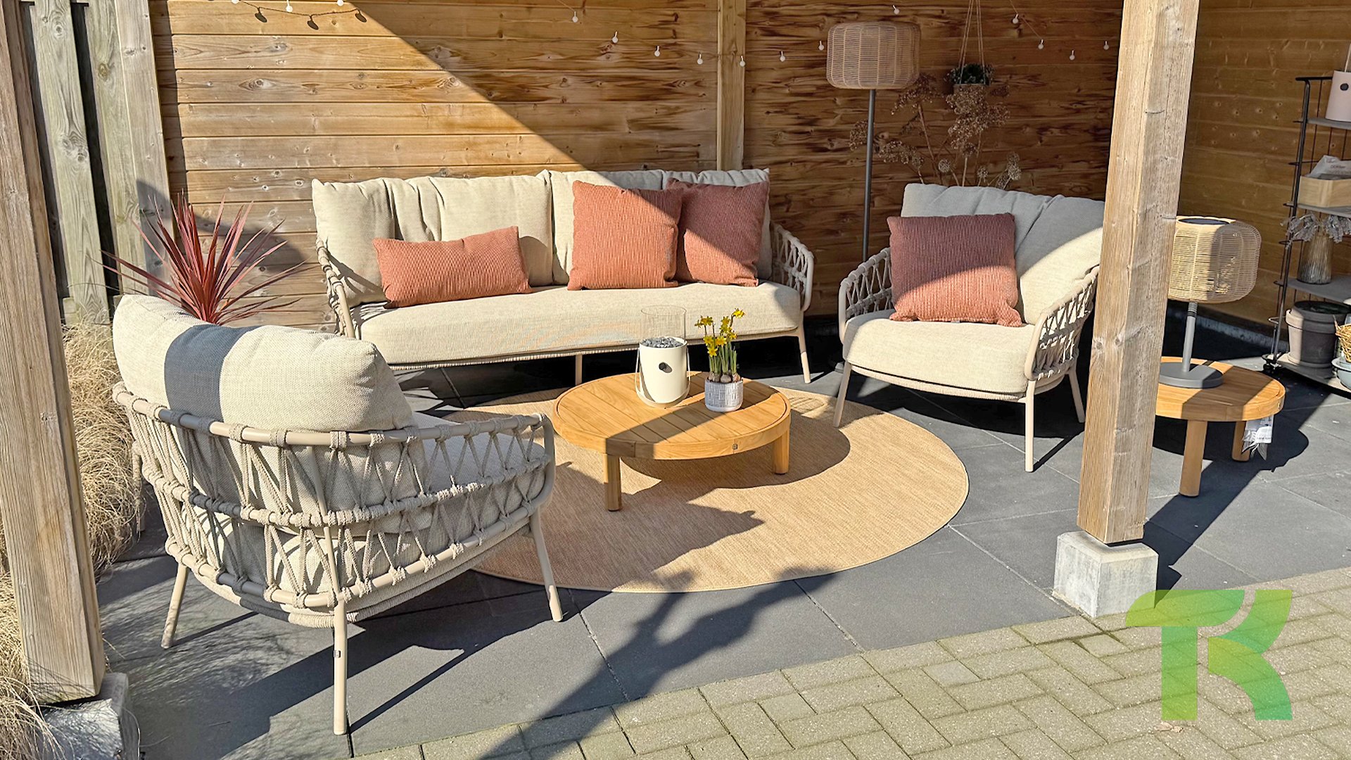 The 4 Seasons Outdoor Calpi series with a new look, Latte. Only available at Garden Furniture Discount! It has a contemporary design and gives each terrace the premium and warm looks you are looking for. The wide rope parts are woven in an original way, giving the Calpi an open character. The 4Seasons Calpi comes with cushions in an all-weather fabric. This fabric has a water and dirt repellent effect, making it resistant to many weather conditions. The frame is made of powder-coated stainless steel, making the 4SO Calpi Lounge Set very suitable to be left outside all year round.