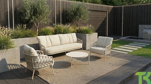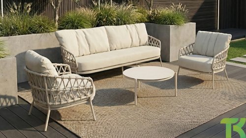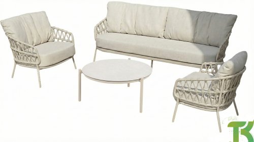 The 4 Seasons Outdoor Calpi series in a new outfit, Latte. Only available at Gardenfurniturediscount.com.com! It has a contemporary design and gives every terrace the premium and warm looks you are looking for. The wide rope parts are woven in an original way, giving the Calpi an open character. The 4Seasons Calpi comes with cushions in an all-weather fabric. This fabric has a water and dirt repellent effect, making it resistant to many weather conditions. The frame is made of powder-coated stainless steel, making the 4SO Calpi Lounge Set very suitable to leave outside all year round.