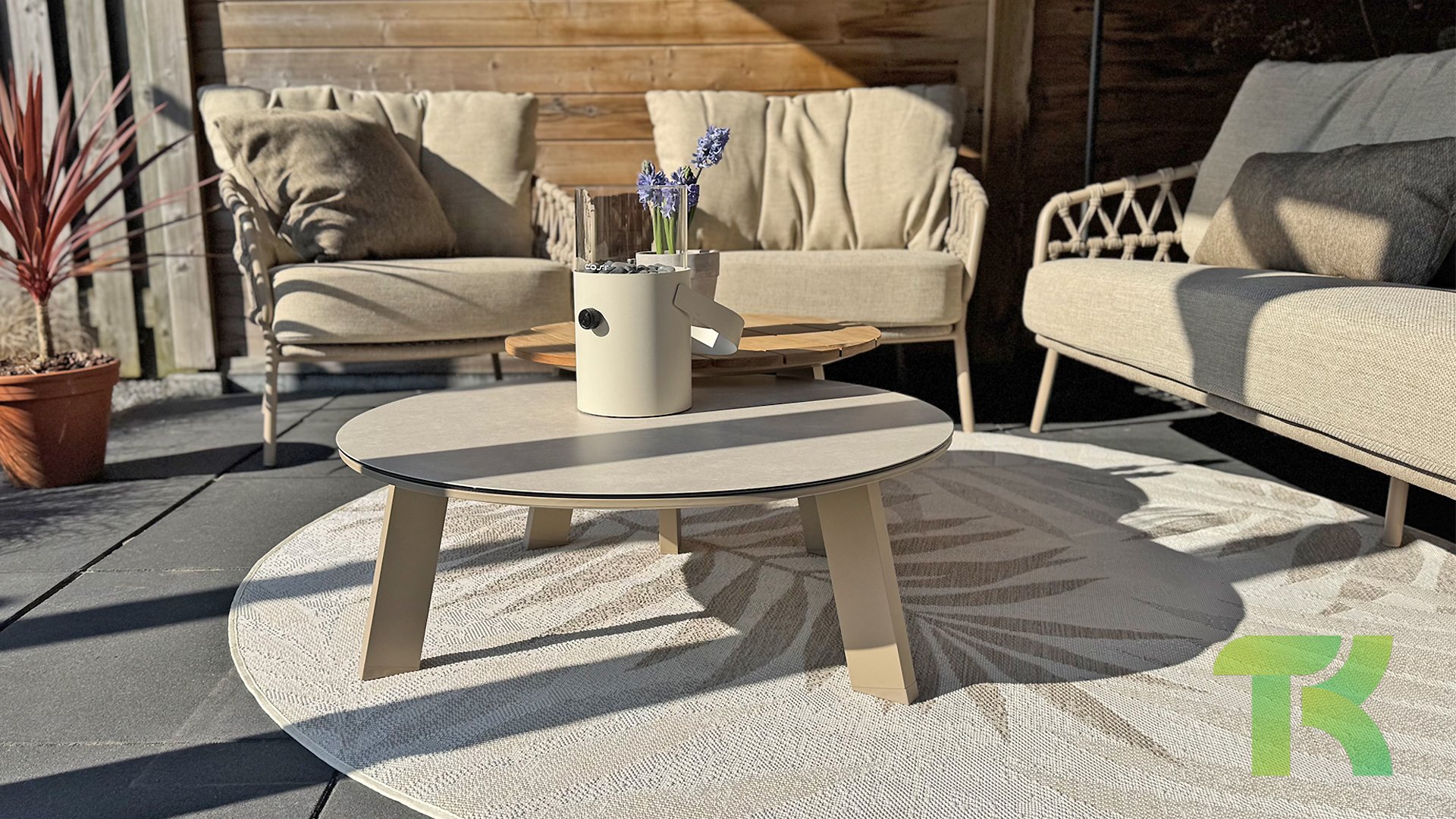 Taste 4Seasons Emma Latte It takes 2 to tango Why settle for 1 coffee table when you can get 2? With the Taste 4Seasons Emma coffee table set, we always give you a table with teak top and one with ceramic glass top. Choose the color that matches your lounge set: latte or anthracite.