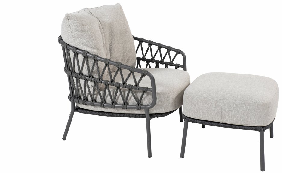 The Calpi Lounge series from 4 Seasons Outdoor, available in Anthracite and Latte. It has a contemporary design and gives every terrace the premium look you are looking for. The wide rope parts are woven in an original way, giving the Calpi an open character. The 4Seasons Calpi comes with cushions in an all-weather fabric. This fabric is water and dirt repellent, making it resistant to various weather conditions. The frame is made of powder-coated stainless steel, making the Calpi Lounge Set very suitable for leaving it outside all year round. Also check out the 4SO Calpi Dining or 4SO Calpi Low Dining!