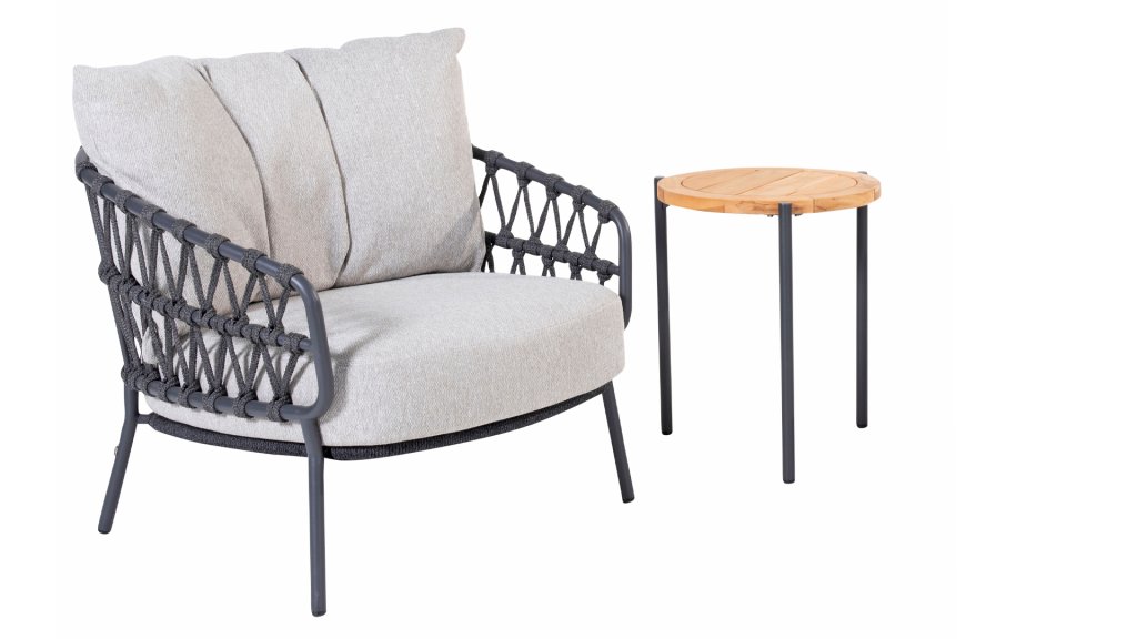 The Calpi Lounge series by 4 Seasons Outdoor, available in Anthracite and Latte. It has a contemporary design and provides every terrace with the premium looks you are looking for. The wide rope parts are woven in an original way, giving the Calpi an open character. The 4Seasons Calpi comes with cushions in an all-weather fabric. This fabric has water and dirt repellent properties, making it resistant to many weather conditions. The frame is made of powder-coated stainless steel, making the Calpi Loungeset suitable for outdoor use throughout the year. Also check out the 4SO Calpi Dining or 4SO Calpi Low Dining!