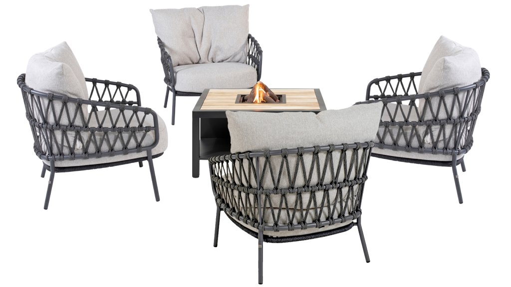 1 x CosiFlow outdoor fireplace anthracite aluminum-teak 100x100xH50cm
