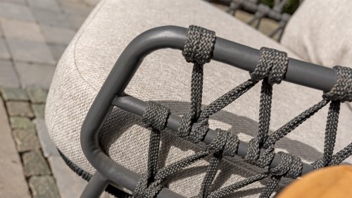 This beautiful material is perfect for outdoor use, because 4SO Rope is not just any ordinary shoelace. 4Seasons uses very high-quality rope made from 100% SDP (Solution Dyed Polypropylene). This material is extremely strong and has very little stretch. Polypropylene is oil-based, making it resistant to dirt and contamination—just like our cushions. 4Seasons offers exclusive designs that feature handwoven rope patterns and techniques.