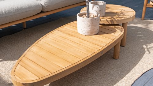 The 4 Seasons Outdoor Finn coffee table series made of teak adds a touch of class and functionality to your outdoor space. These coffee tables can be added to a large part of our lounge sets. Teak wood combines perfectly with many materials and colors. Create a set with this 4SO Finn coffee table, choose a combination of the large and/or small round variant or the rectangular one, so you have a unique addition to your lounge set.