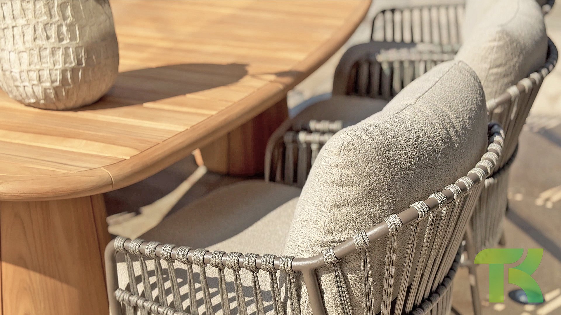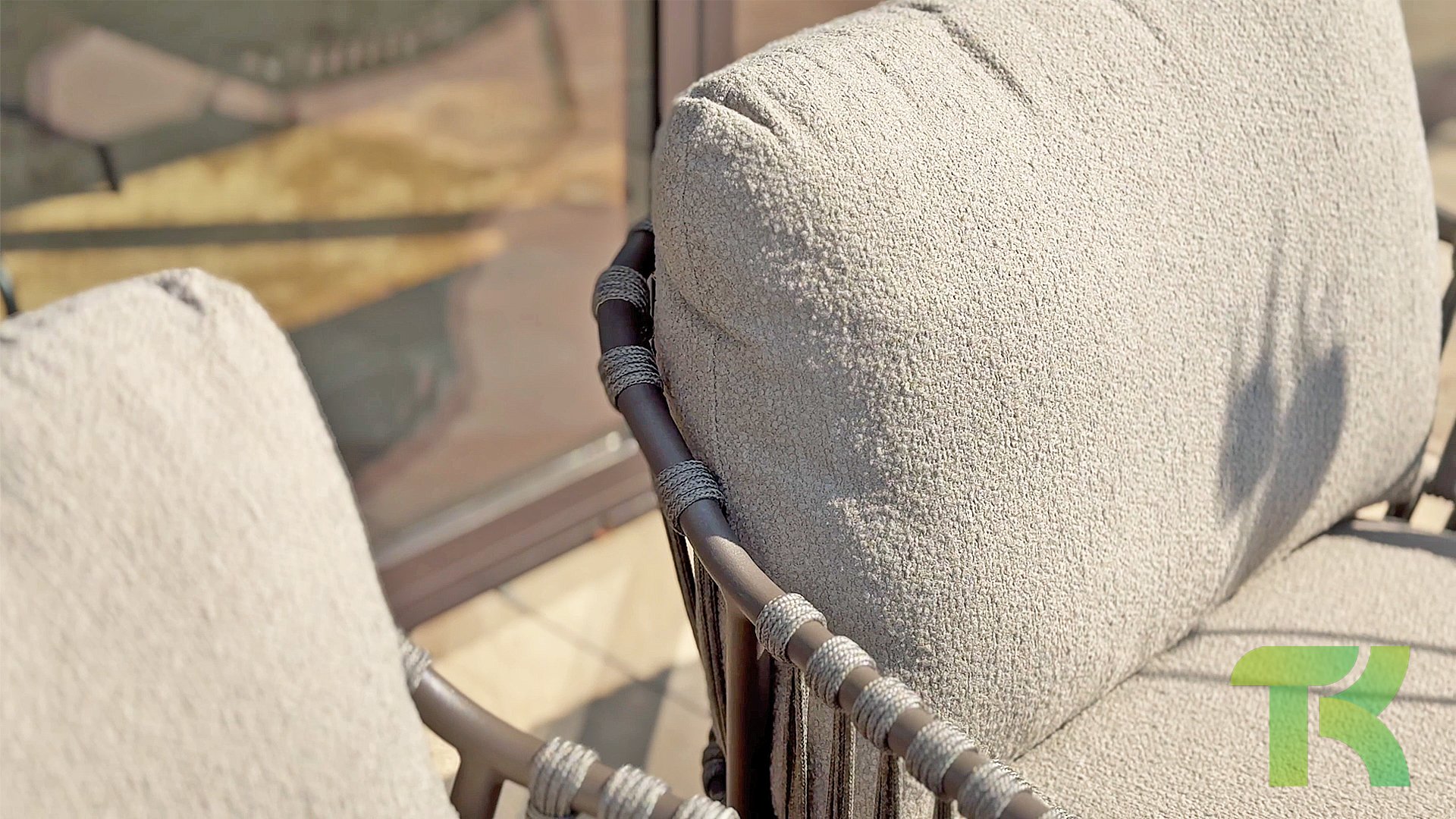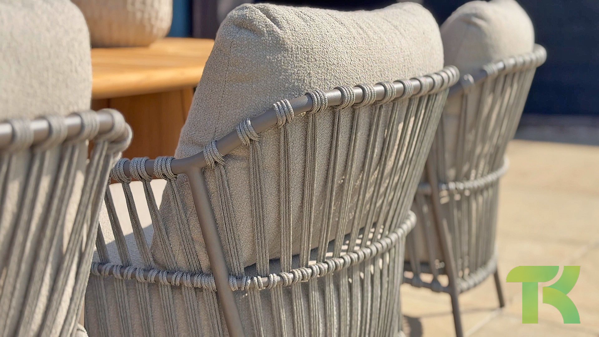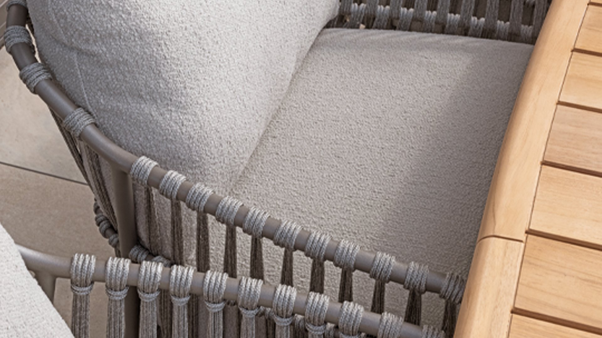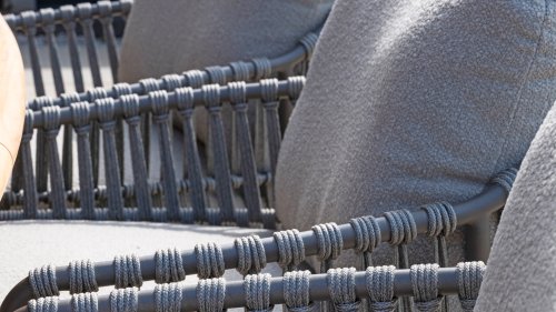 This beautiful material is perfect for outdoor use, because 4SO Rope isn't just any shoelace. 4Seasons uses very high-quality rope made from 100% SDP (Solution Dyed Polypropylene). This material is extremely strong and has a very low stretch. Polypropylene is oil-based, so dirt and contaminants are virtually insoluble, just like our cushions. 4Seasons offers exclusive designs using hand-woven rope patterns and techniques.