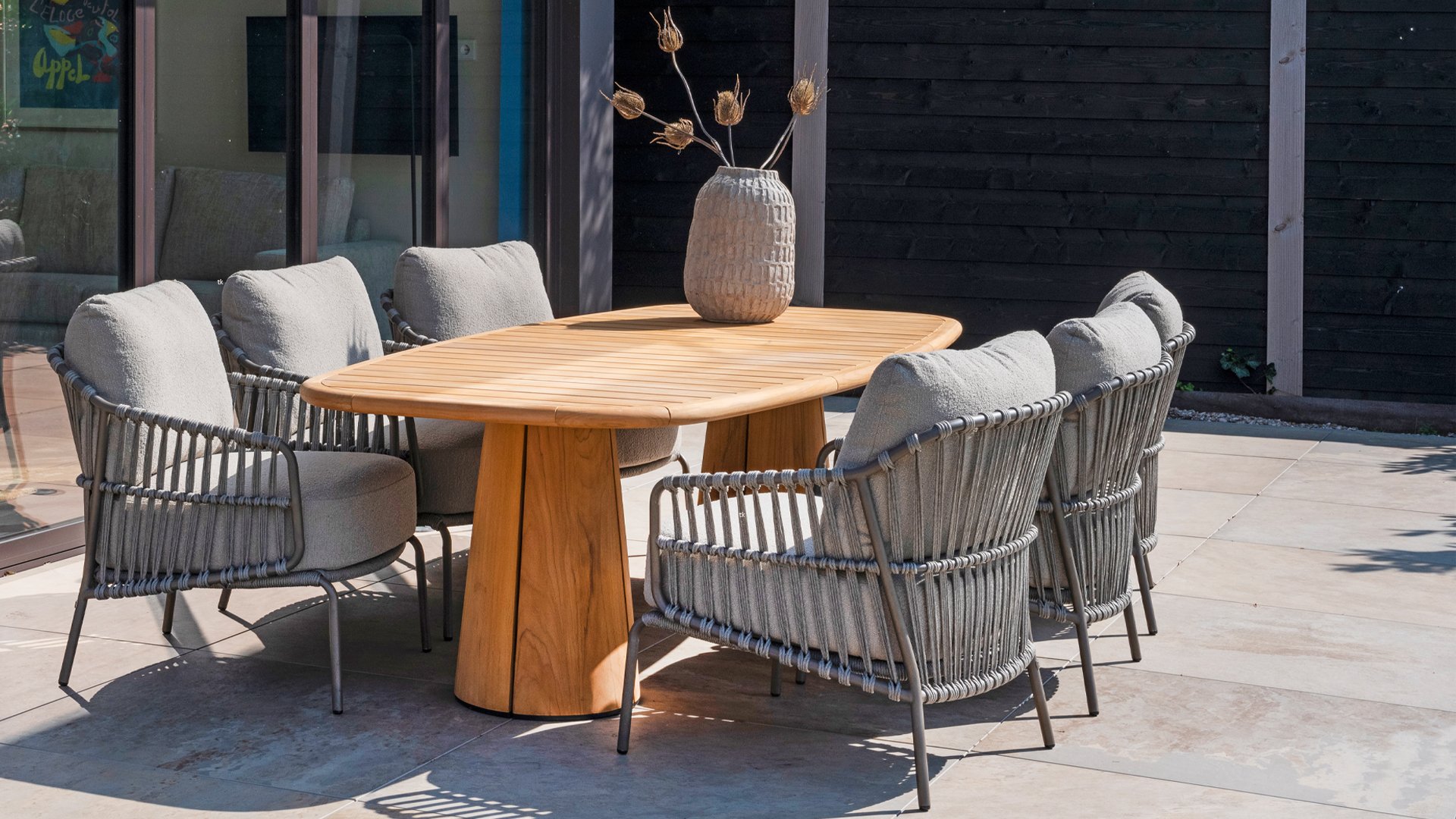 Olefin cushions feel comfortable, almost like a sofa or chair indoors. This is because almost all our cushions are upholstered with olefin fabric. This fabric has several unique properties. The raw material for olefin production is oil. Dye is added early on so that it is embedded in the core. This makes the fabric colorfast, UV-resistant, and water-repellent. Therefore, olefin is also used in technical sportswear and in the automotive industry, for example.