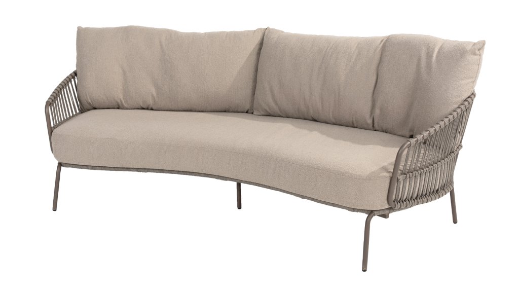 Experience the ultimate lounge comfort with the 4 Seasons Capalbio lounge. This sofa is designed to let you dream away in the extra thick cushions of soft bouclé fabric. The modern design, with its elegant curves and open Rope patterns, adds a stylish touch to any garden.