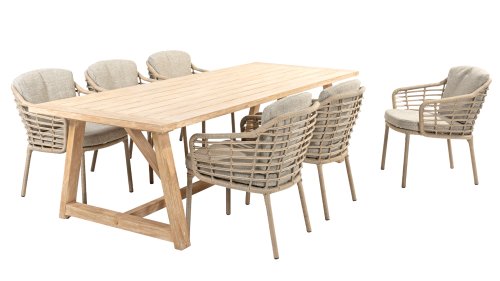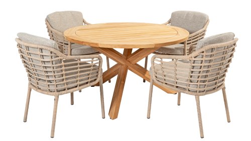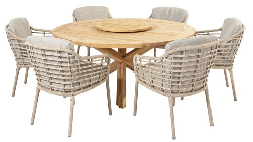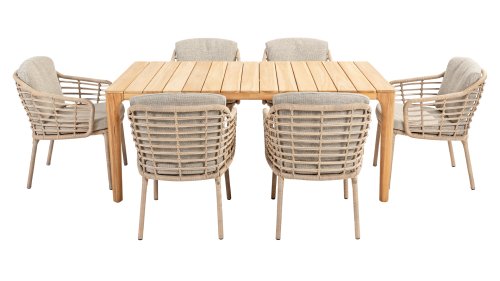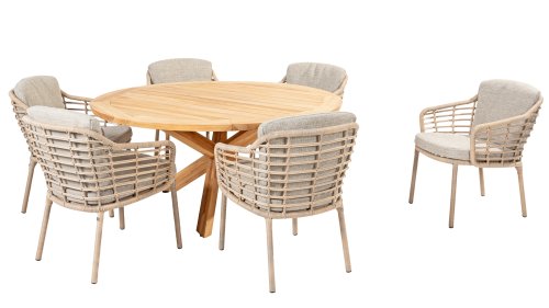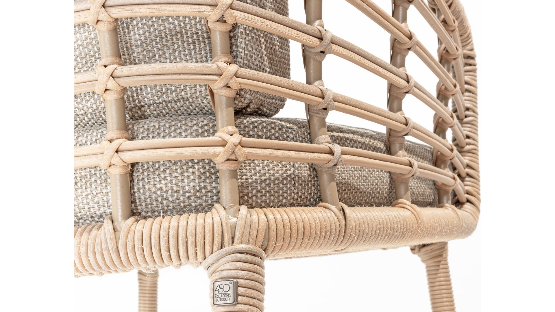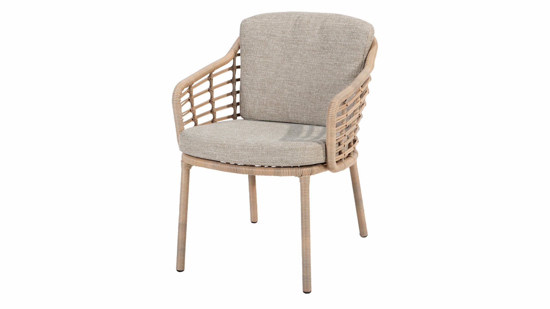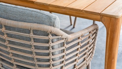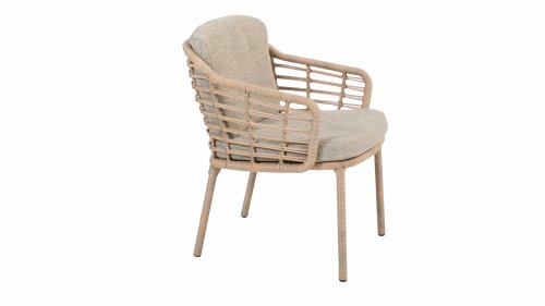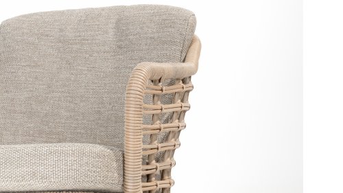 Enjoy timeless retro vibes and natural beauty with the 4 Seasons Outdoor Como dining chair harvest. This chair comes with cushions and has an atmospheric taupe wickerwork and a durable, aluminum frame. The natural tones and the unique 'harvest' wickerwork give the Como dining chair its character.