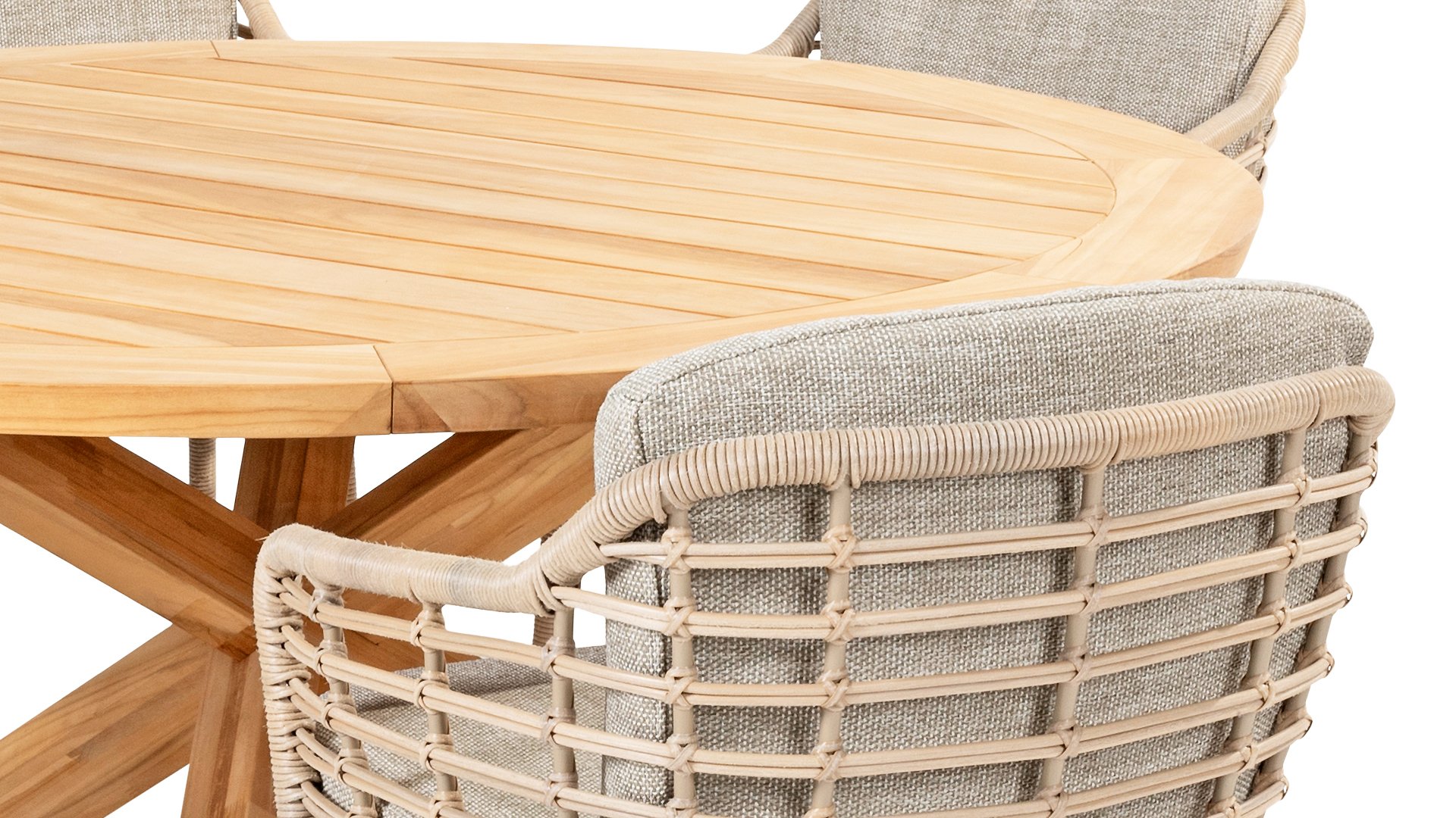 You can confidently call this table the top of the collection. The qualitative teak, in combination with the teak wooden cross leg, make this Taste by 4Seasons Prado 160cm table a gem. It can be combined with almost any dining chair from our collection. Optionally, it can be combined with the Prado Lazy Susan and available with an anthracite or frost grey aluminum leg.