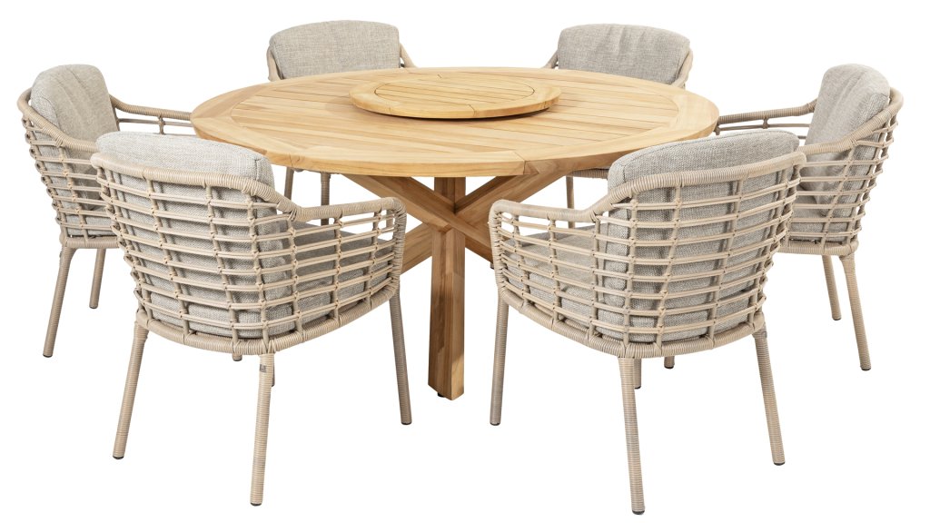 You can safely call this table the top of the collection. The high-quality teak, in combination with the teak cross-legged base, make this Taste by 4Seasons Prado 160cm table a gem. It can be combined with almost any dining chair from our collection, so there is something for everyone. Optionally available with an anthracite or frost grey aluminum base.