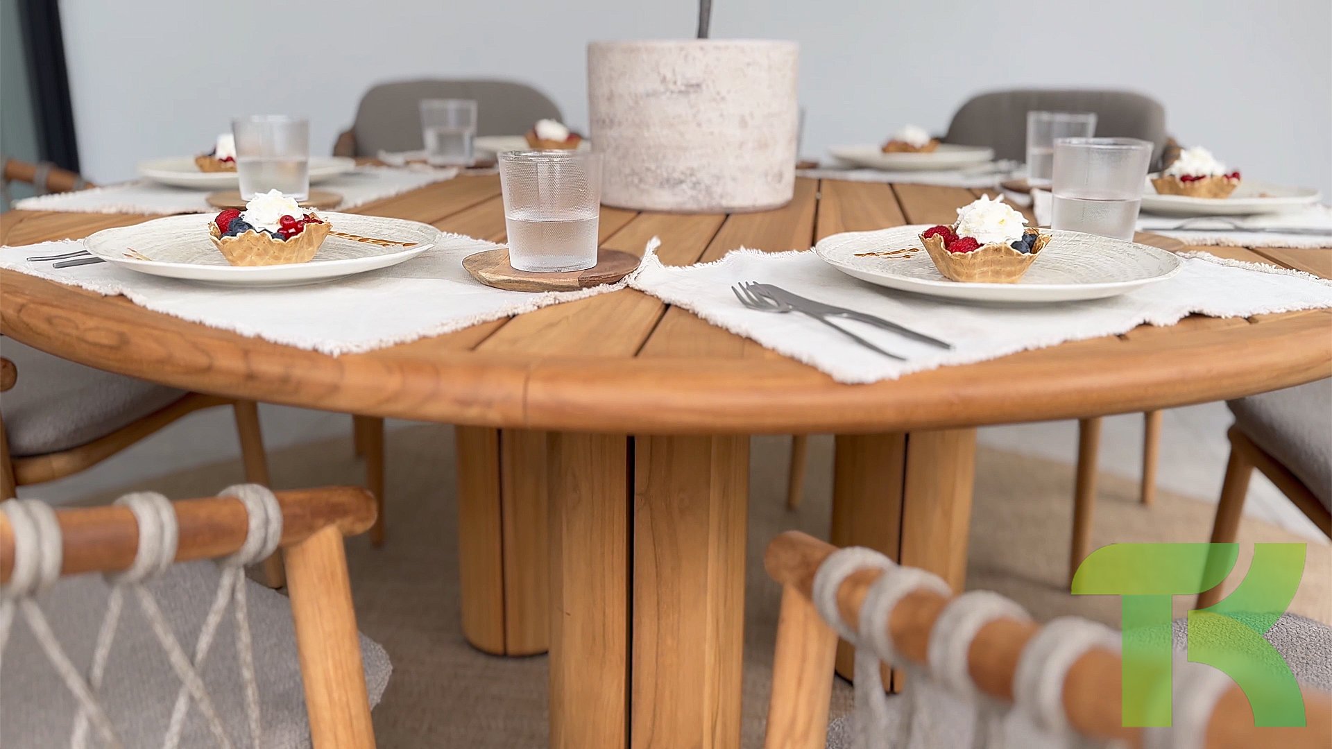 The Corsica 160cm round is a beautiful addition to any exterior, entirely made of high-quality teak wood.