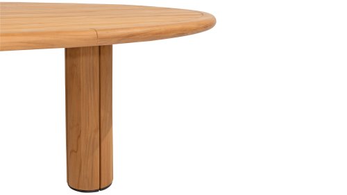 The round legs provide stability and contribute to the sleek design of the table. The natural tones and the beautiful grain of the teak wood make each table unique, with a warm, inviting appearance. This table is perfect for social gatherings and daily meals. A real eye-catcher that combines functionality and aesthetics. Also available in Pebble shape.