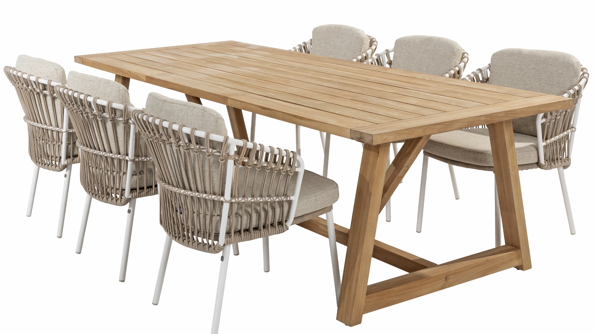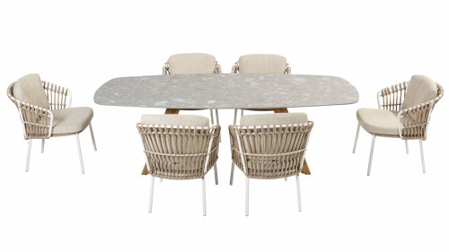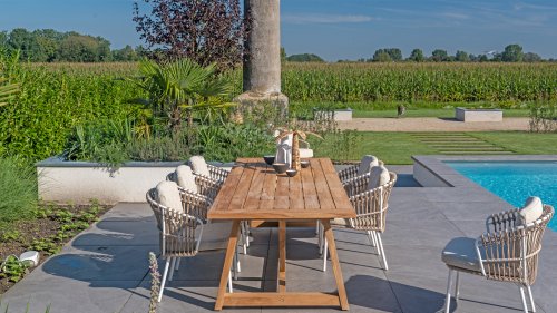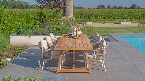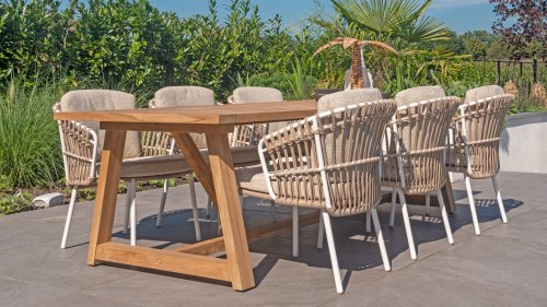 With the 4 Seasons Outdoor Dalias dining chair, you can enjoy the perfect combination of luxury and durability. Also available in lounge and low dining, see them here: 4SO Dalias Lounge and 4SO Dalias Low Diningset.