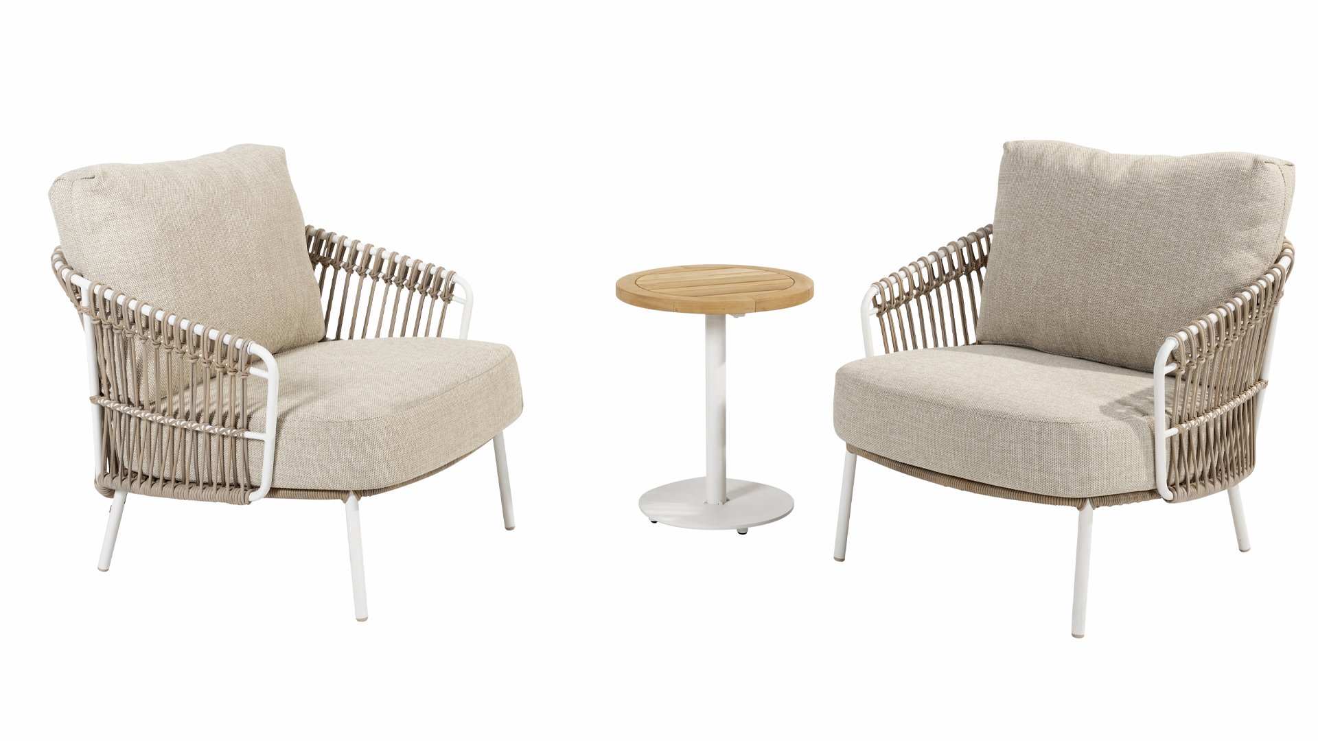 White dalias on the beach Close your eyes and imagine yourself in Ibiza. The summer atmosphere that the Dalias series exudes with its white frame and taupe wickerwork instantly gives your garden a sunny boost. If you love summer, then you'll love Dalias.